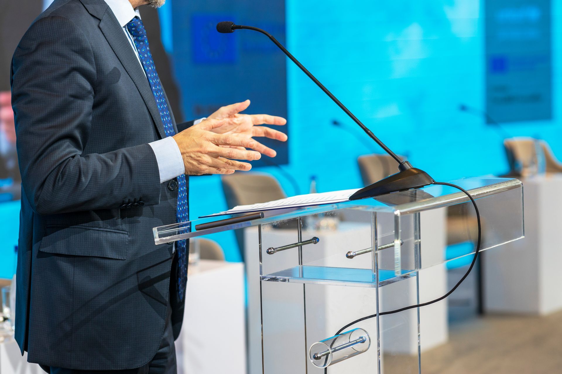 * Management of technical equipment for a speech (sound system, lighting, video projection, podium, lectern, etc.)